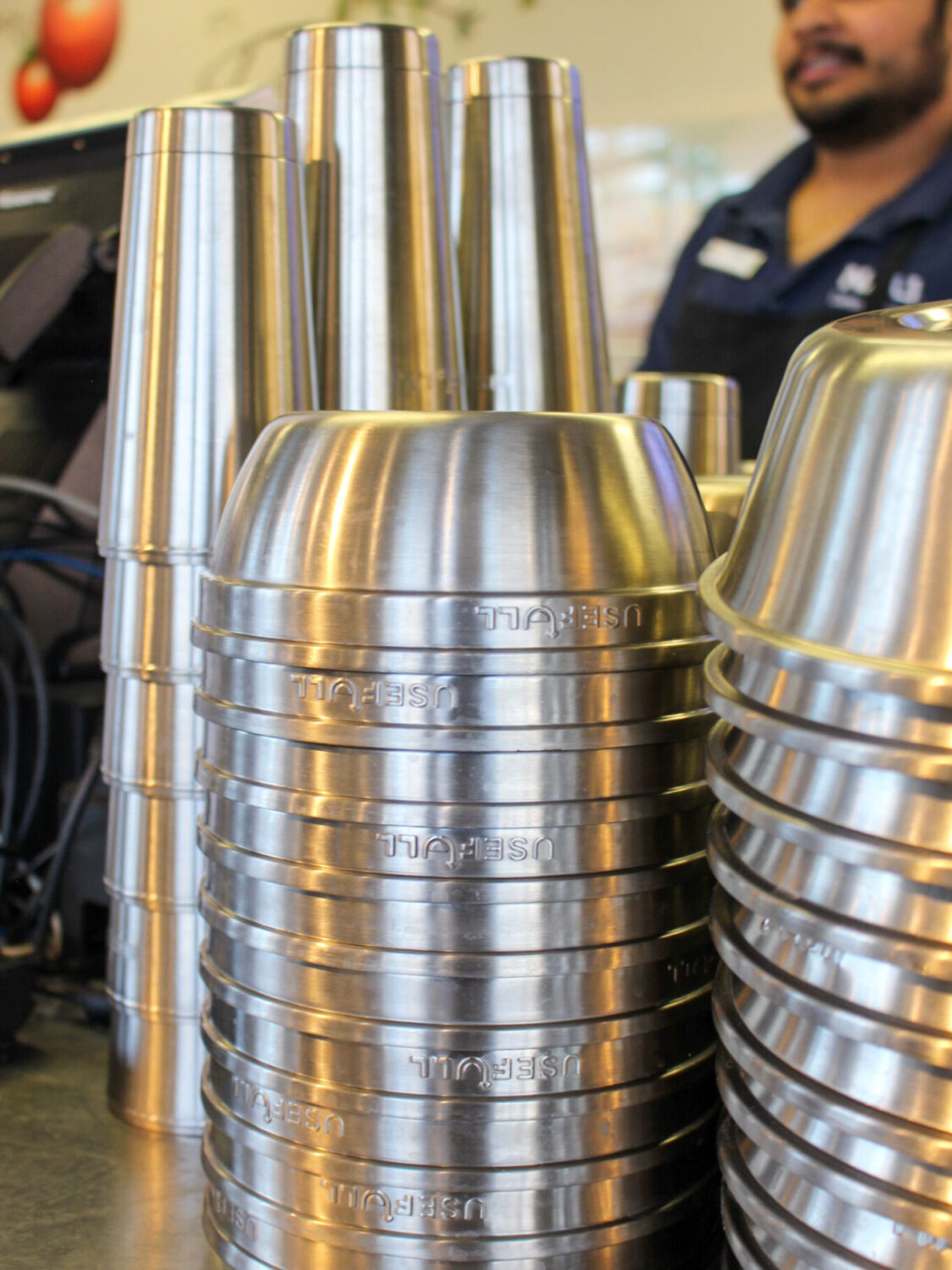 Stainless steel becomes the default takeout container at three popular dining locations. Students ordering from the reuse-activated locations receive their meal in a premium stainless steel container for a waste-free, convenient experience.
